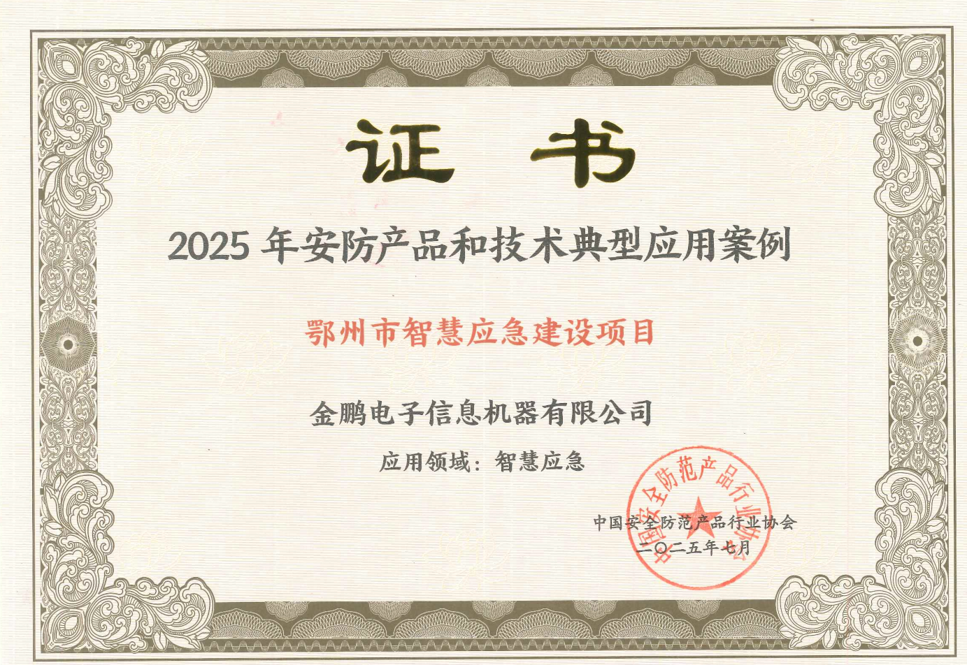 2025年9月26日,由中國安全防范產(chǎn)品行業(yè)協(xié)會(huì)主辦的2025低空安全產(chǎn)業(yè)發(fā)展論壇暨第三屆中國安防無人系統(tǒng)安全高峰論壇在北京舉辦。中國安防產(chǎn)品行業(yè)協(xié)會(huì)專家委員會(huì)秘書長傅永超主持發(fā)布2025年安防行業(yè)典型應(yīng)用案例。金鵬電子申報(bào)的鄂州智慧應(yīng)急建設(shè)項(xiàng)目榮獲2025安防行業(yè)產(chǎn)品與技術(shù)應(yīng)用典型案例榮譽(yù)稱號(hào)。